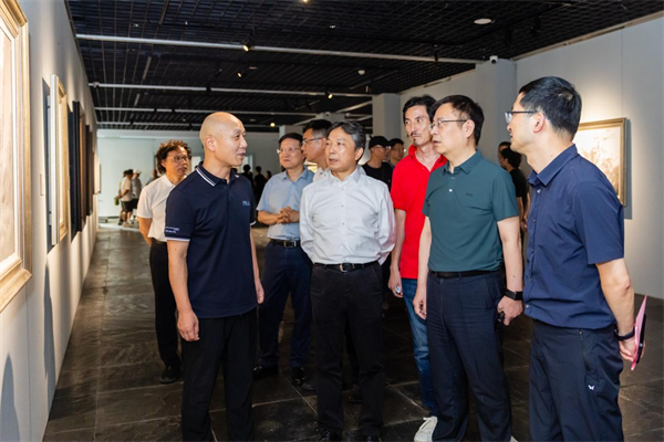 开幕式上,本次展览的学术主持、江苏油画雕塑院院长、江苏省油画学会副主席孙俊致辞。他谈到,李荣国和陈光龙虽创作方向不同,一个以风景为主,一个侧重人物,但他们作为“70后”艺术家,有着相同时代背景。李荣国的作品流露出对时代变迁中逝去事物的留恋,旧工厂、老码头等场景不仅是公共集体记忆,更是个体青春体验的追忆,他的风景是内心深处普世性共情的折射;陈光龙作品细腻典雅,用隐喻手法展现对青春、情感的思考,完成了从“形态”到“心象”的现代性更新。此次双个展是两人艺术理念的碰撞与精神的融合,展现了“70后”艺术家的公共情怀和人文精神。