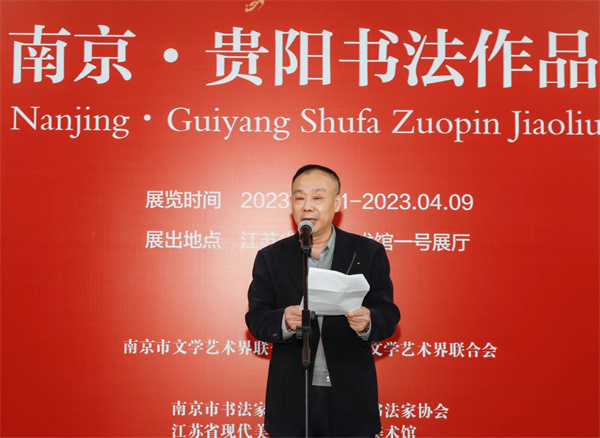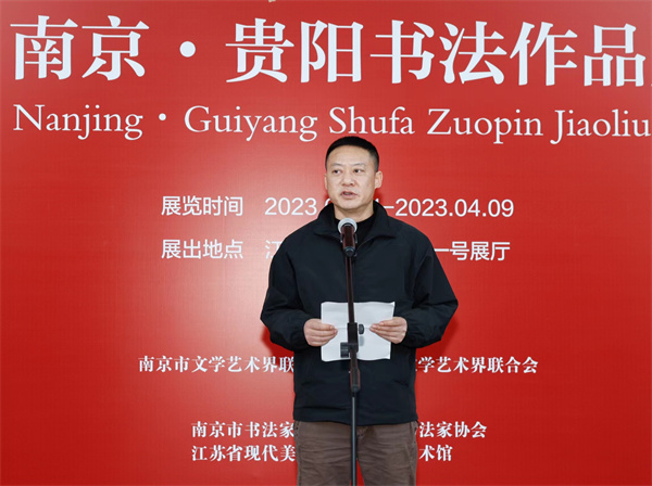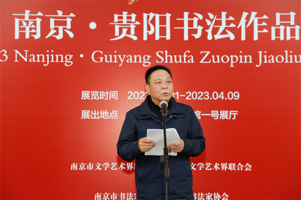 任家龙在开幕式上表示,南京和贵阳虽有千里之遥,却有深厚的文化渊源。两地文联共同举办书法交流展,南京书家写贵州,贵阳书家写江苏,不仅是积极响应中国书法家协会“结对子·促发展”合作互助倡议的重要举措,更是两地文艺家丹青传情、两地文化互学互鉴的当代传承。南京是“一带一路”交汇点重要枢纽城市,贵阳是连接“一带一路”的重要门户,都是中华优秀传统文化的富矿,都是叠加重大战略、具有重要地位的机遇之城。希望两地的书法家把握好千载难逢的发展机遇,继承发扬好民族文化传统,在交流互鉴中实现共同进步,用笔墨形象和精品力作展现中华气度、阐释中华美学,不断增强中华文明传播力影响力,让世界文明百花园姹紫嫣红、生机盎然。