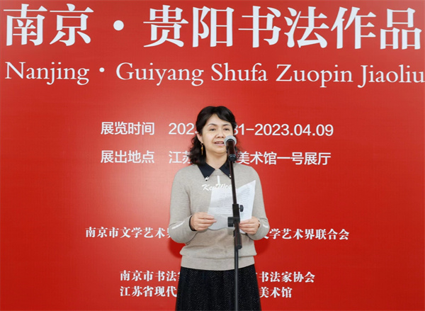 徐爽在讲话中认为,贵阳和南京虽然山水相隔,各自的文化艺术风格千差万别,但文化交流却有很深的渊源,文化情愫千丝万缕。生于贵州、居于南京、闻名海内外的著名书法家萧娴女士,便是两地文化紧密联结的杰出代表。她希望两市书家通过举办书法联展开阔视野,增强传统友谊,促进相互借鉴共融。