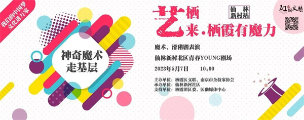 一直以来,栖霞区高度重视文艺惠民工作,运用集成思维构建“霞 WE TALK”文艺名家讲堂、“有言在仙”大家通识课、“艺栖来”文艺志愿行动等特色品牌矩阵。本次“艺栖来 栖霞有魔力”活动是南京市杂技家协会联合栖霞区文联共同举办的“神奇魔术走基层”系列活动的第一场,结合市委宣传部“我们的中国梦——文化进万家”要求,“神奇魔术走基层”活动以丰富多彩的文化活动和艺术作品,不断满足人民群众对文化生活的新需求、新期待,为在新时代新征程上全面推进中国式现代化南京新实践,奋力谱写“强富美高”新南京现代化建设新篇章提供价值引导力、文化凝聚力、精神推动力。