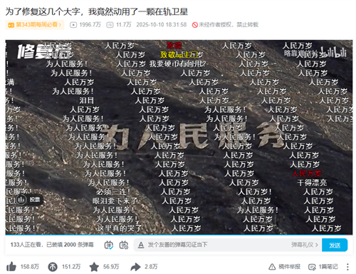 UP主@略靠谱旅社 作品《为了修复这几个大字,我竟然动用了一颗在轨卫星》
