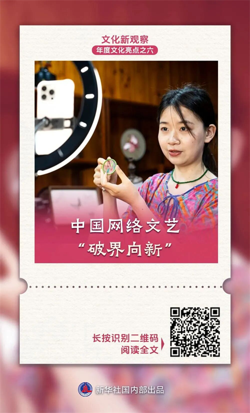 《生万物》《锦绣芳华》等文学改编剧集火爆网络,《大力村超人》《玉见梁辰鱼》等融合“非遗+文旅”元素的微短剧吸引人们打卡拍摄地,非遗匠人网络直播带火传统技艺、素人创作者通过短视频讲述身边故事分享人生感悟……因“网”而生、倚“网”而盛的中国网络文艺在“破界向新”中蓬勃发展,在“技”“艺”相融中不断丰富文化体验。