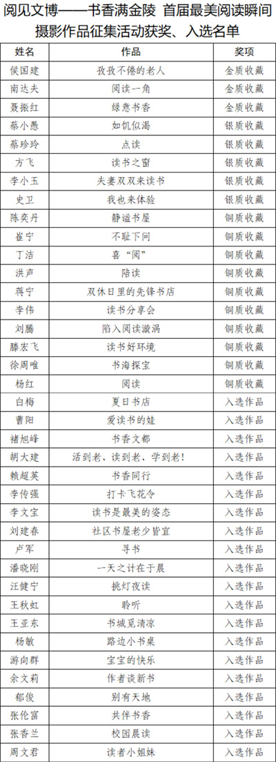 阅见文博——书香满金陵 首届最美阅读瞬间摄影作品征集活动获奖、入选名单公布