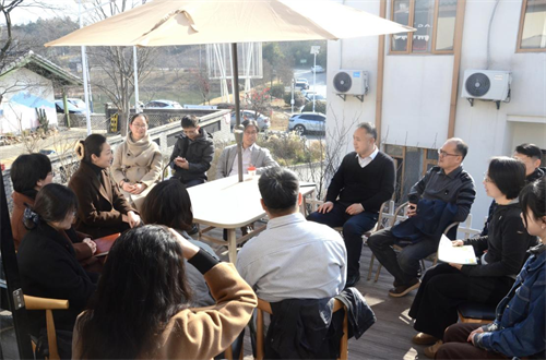 与会人员深入亲见村薛家自然村,调研文艺新业态发展现状,通过实地走访感受艺术融入乡村空间带来的变化与潜力。在随后召开的资源对接会上,聚焦2026年乡村文艺发展的具体规划,围绕村落实际需求与文联系统、农业农村系统和艺术院校专业资源如何高效、精准对接展开了务实研讨。市文联、市农业农村局、晓庄学院美术学院、南京美术馆、江宁区文联与亲见村村书记、乡村新业态主理人代表等深入交流,谋划新一年度文艺赋美乡村的重点项目与实施路径,旨在形成“一村一策”定制化提升方案。