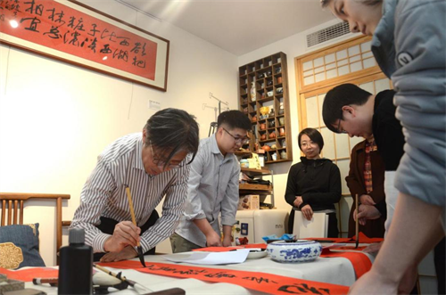 图3 “文艺赋美乡村 笔墨书写乡情”-晓庄学院美术学院艺术家、教师为乡村主理人和村民代表送福、送春联