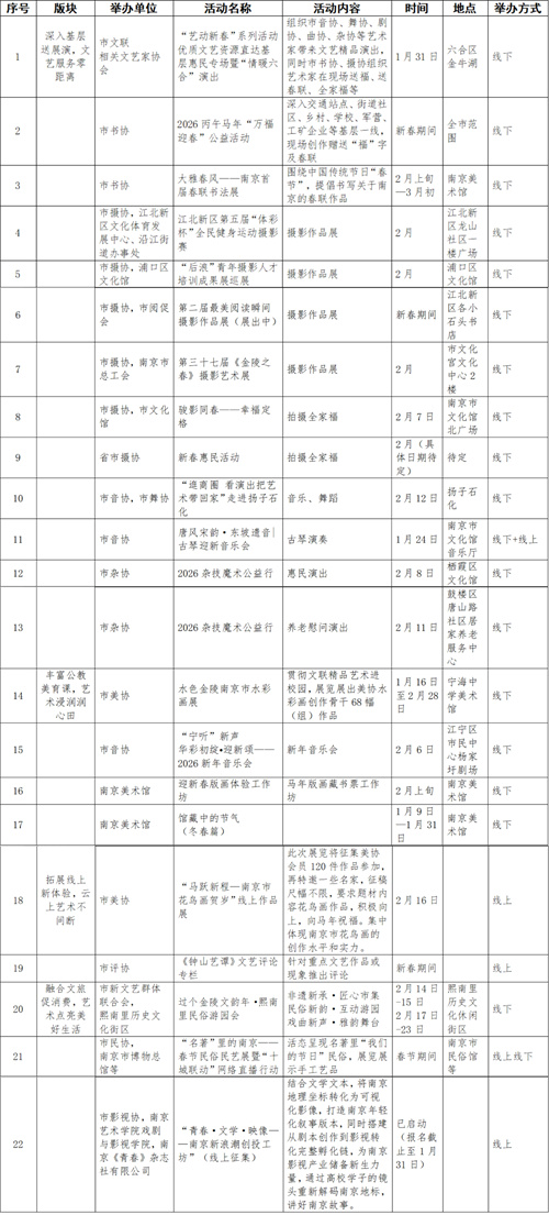 2026南京市文联“艺动新春”系列惠民活动即将温暖启幕