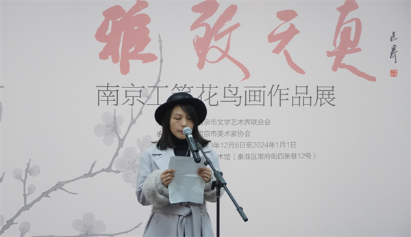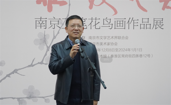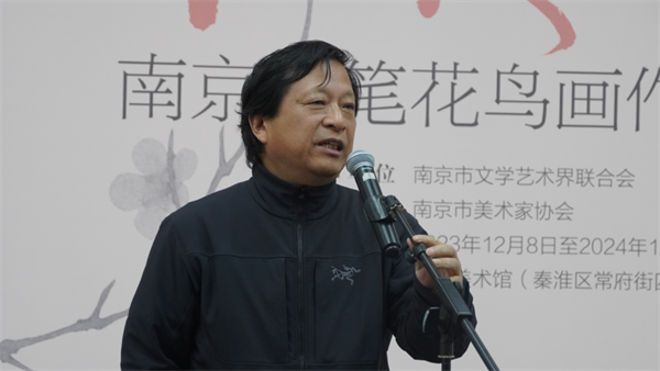 (南京大学艺术研究院教授、南京市花鸟画研究会会长聂危谷代表南京市花鸟画研究会致辞)