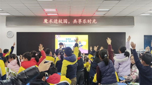 1月5日下午,“艺栖来·栖霞有魔力”——魅力燕子矶活动在南京晓院附小举办。本次活动由南京市杂技家协会、栖霞区文学艺术界联合会、燕子矶街道妇联主办,南京晓庄学院附属小学教育集团、燕子矶社区承办。南京市杂技家协会会员彭湘琪、陆鹏,南京师范大学深蓝魔术社社长善珽凯走进校园,通过现场表演、互动体验等方式,让孩子们近距离感受魔术艺术的独特魅力。