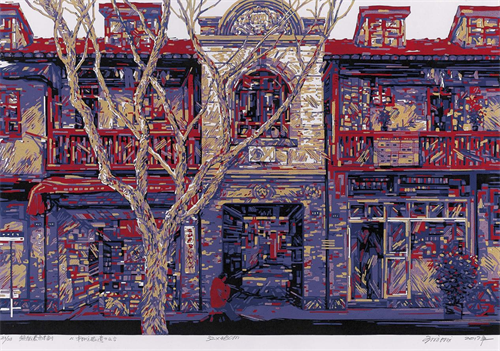 王成诚 《申城拾遗之六》 套色木刻 32cm×48cm 2017 南京美术馆馆藏