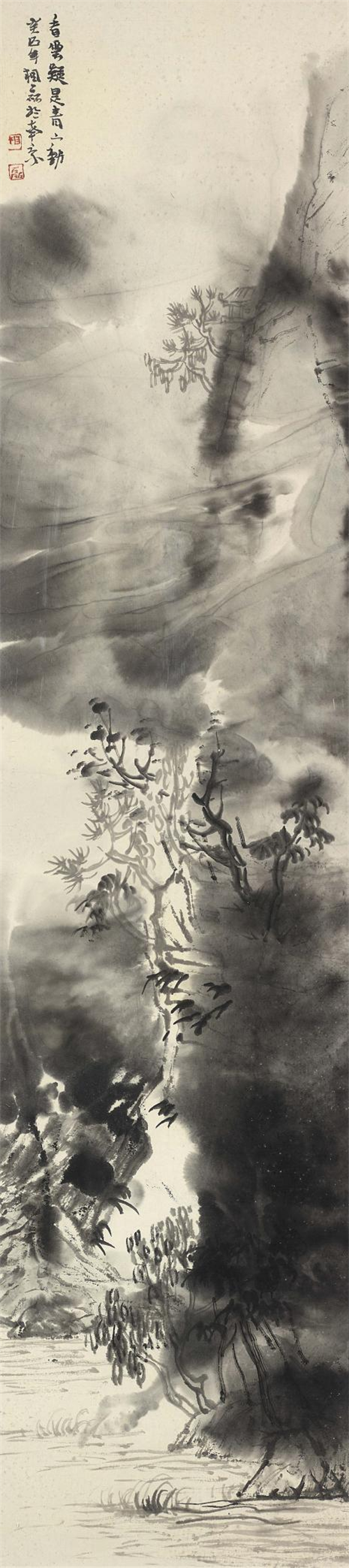 相磊 《看云疑是青山动》 纸本水墨 137cm×31cm 2009 南京美术馆馆藏