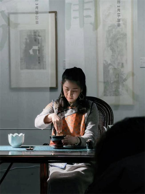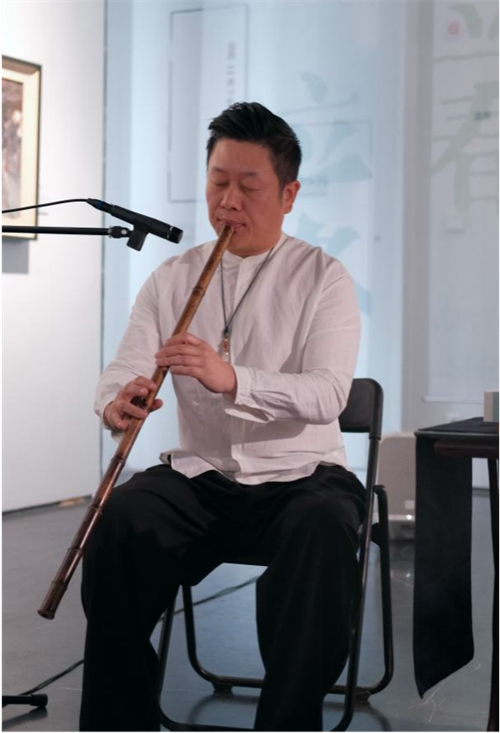 随后,香、乐、茶表演在展厅接续上演。姜江老师手持香匙,演示制香、焚香、理灰等步骤,让观众直观感受香道的风雅。当香气自铜炉中袅袅升起,空灵悠远的箫声恰如其分地流淌在展厅的每一个角落。
