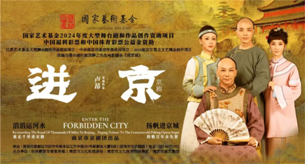 京剧《进京》改编自著名剧作家邹静之先生耗时6年潜心打磨的电影剧本《进京城》,由南京市京剧团于2023年创排,荣获第十届中国京剧艺术节优秀剧目,入选2024年度国家艺术基金大型舞台剧和作品创作资助项目,2022年度江苏艺术基金大型舞台资助项目、中共南京市委宣传部扶持项目、2023南京市重点文艺精品创作项目。