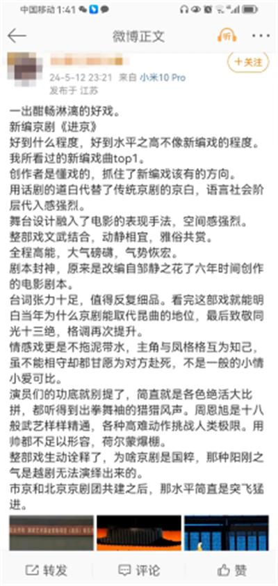 5月11日-12日,国家艺术基金2024年度大型舞台剧和作品创作资助项目京剧《进京》在南京文化艺术中心成功首演,并获得热烈好评。